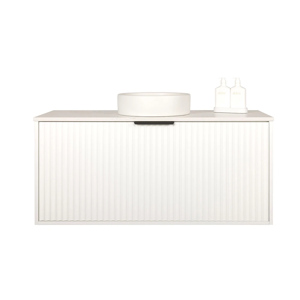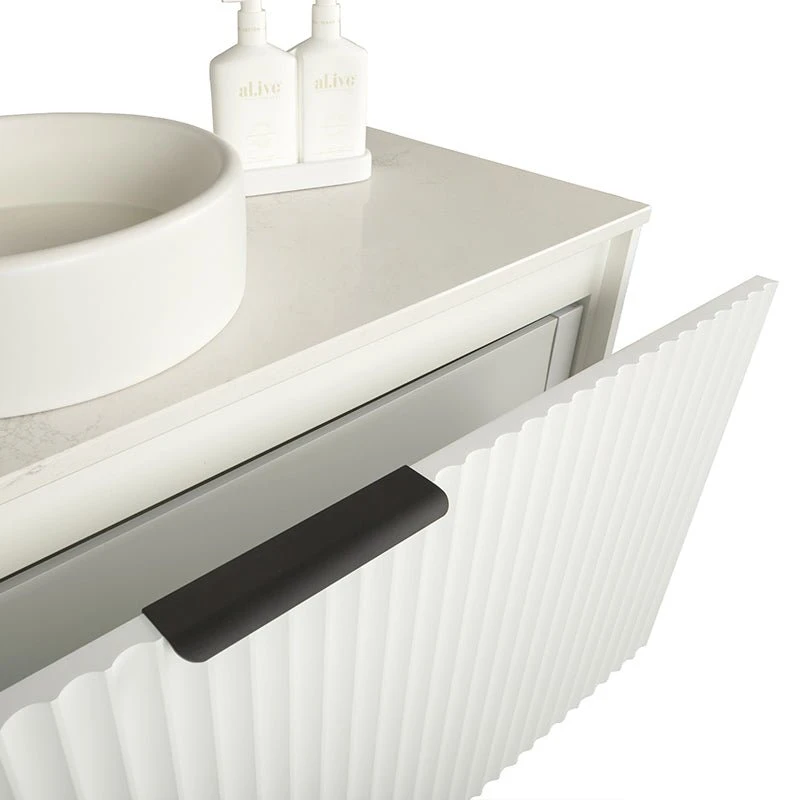 The Alia matte white vanity will inspire your bathroom design. It features a stunning bordered coved drawer face creating a picture frame style bathroom vanity. Inside you will find a drawer deep enough that Alice in Wonderland could get lost. You can store almost anything in there. But hidden away is the top drawer which can’t be seen from the outside world. This is where you can neatly store all your make-up, cream cleansers, and deodorants so you don’t need to clutter your vanity benchtop.