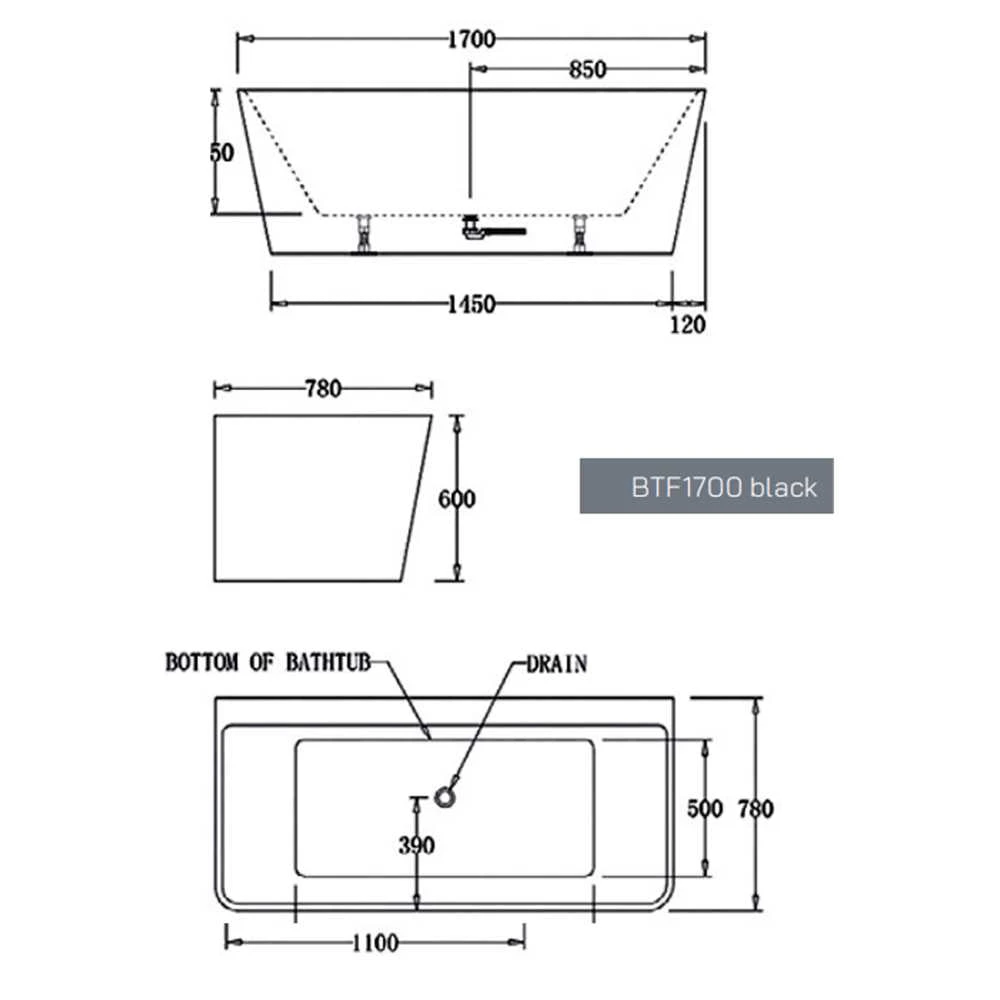 - Size: 1700mm (Long) x 780mm (Wide) x 600mm (Height)