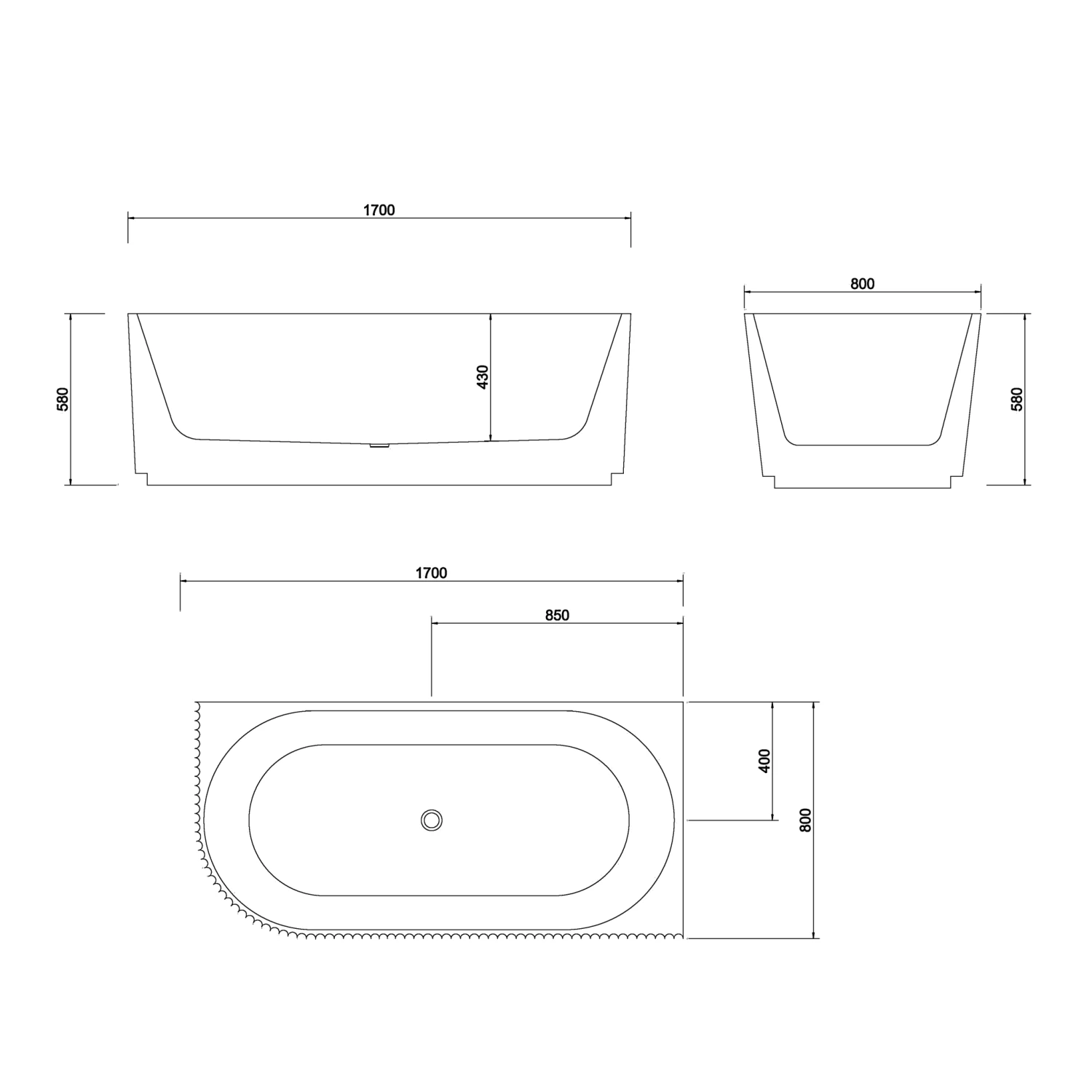 - Size: 1700mm (Long) x 800mm (Wide) x 580mm (Height)