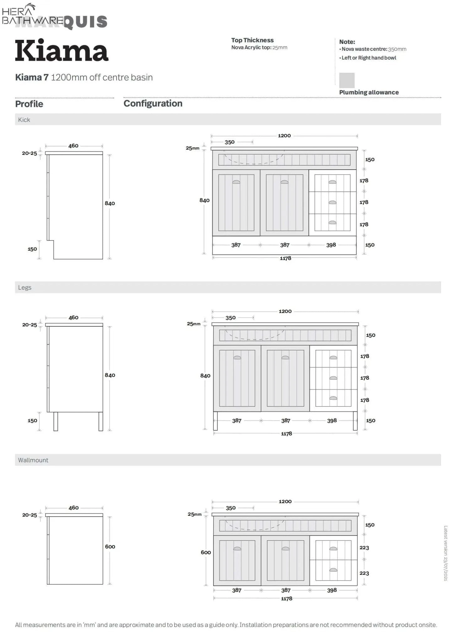 - 2 Doors &Â 2 Drawers Wall Hung (Off Set Bowl & Double Bowls)