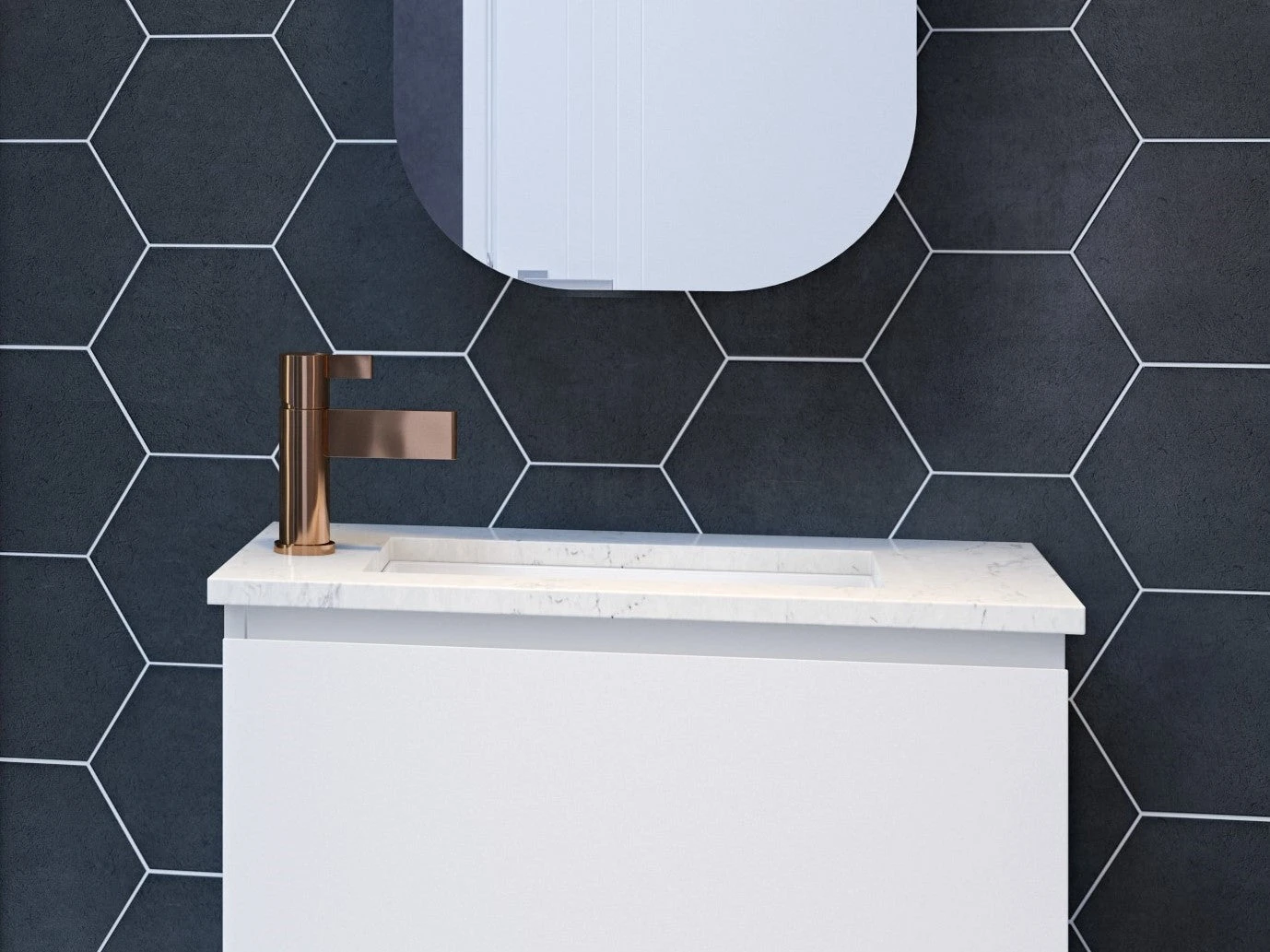 - Mini Rectangle Undermount Basin 430mm White Gloss