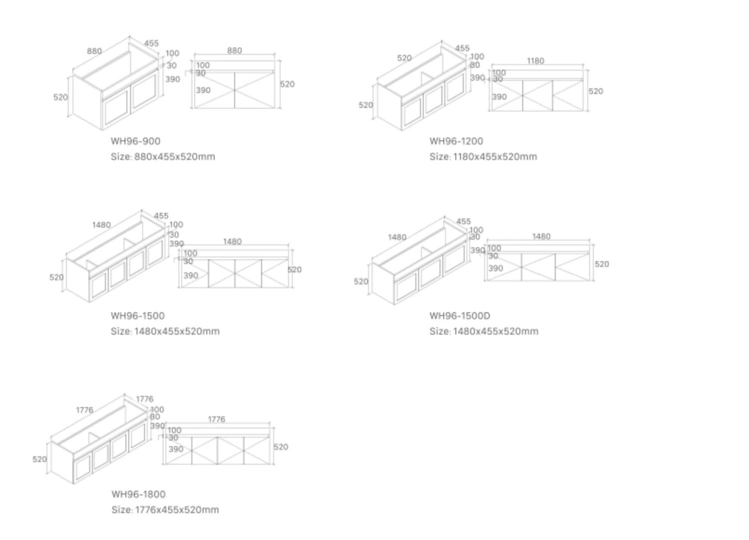 - Overall 460mm Wall Hung Vanity