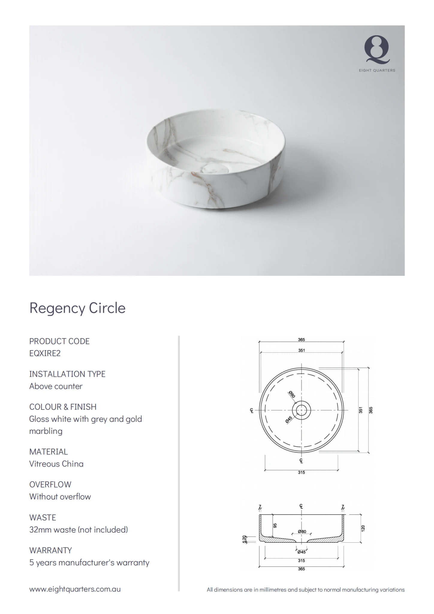 - 5 year manufacturer’s warranty basin, 1 year manufacturer’s warranty wasteÂ
