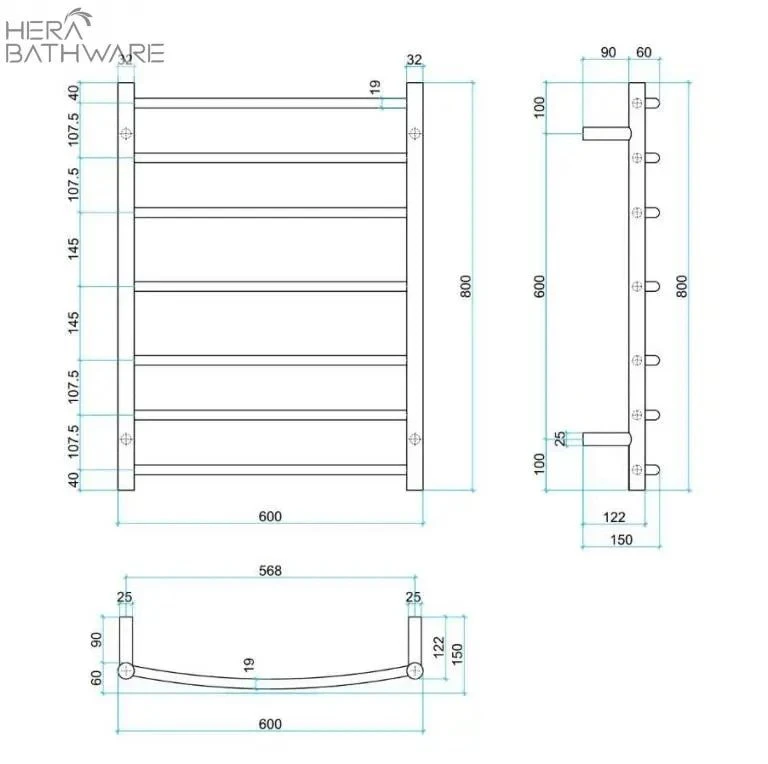Heated Towel Rails are an affordable luxury for every bathroom for warming and drying your towels. The CR44M Heated Towel Rail is a 600×800 7 bar polished stainless steel ladder rail which features multiflex wiring. The curved rail design provides additional hanging space for the towels between the rail and the wall.