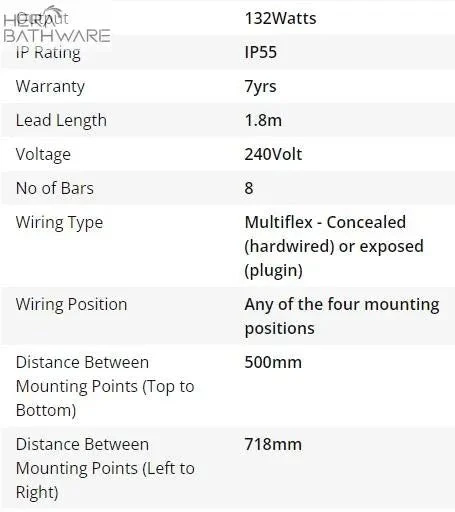 The SR33M towel heater features multiflex wiring. This means that you have a connection point on the right or left hand side of the rail, this would be typically at the bottom but the rail can be flipped so that it is at the top and provides the option of hardwired or plugin, all as standard out of the box.